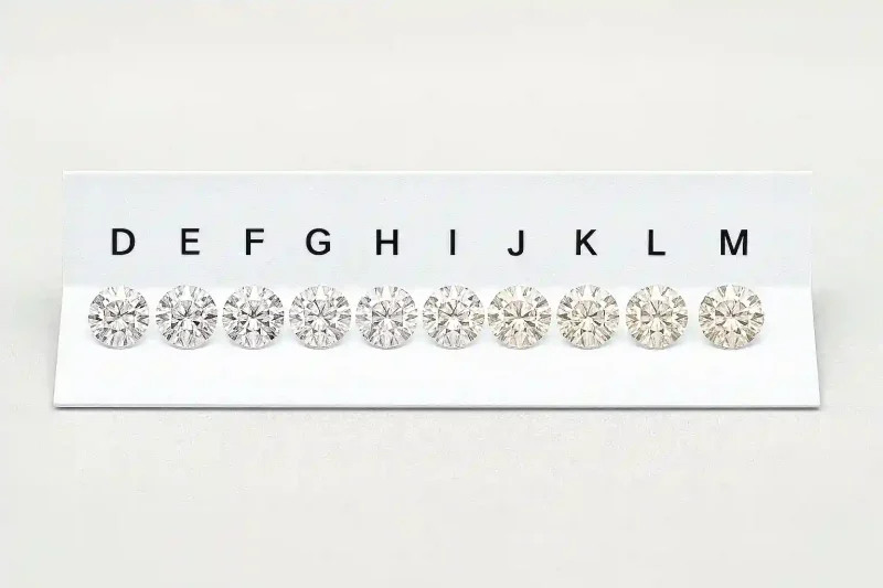 При одинаковой массе, чистоте и огранке каждая ступень вниз по цвету даёт ощутимую экономию. Особенно чувствителен диапазон от D до H: визуально камни могут выглядеть почти одинаковыми, а в цене отличаться на десятки процентов.