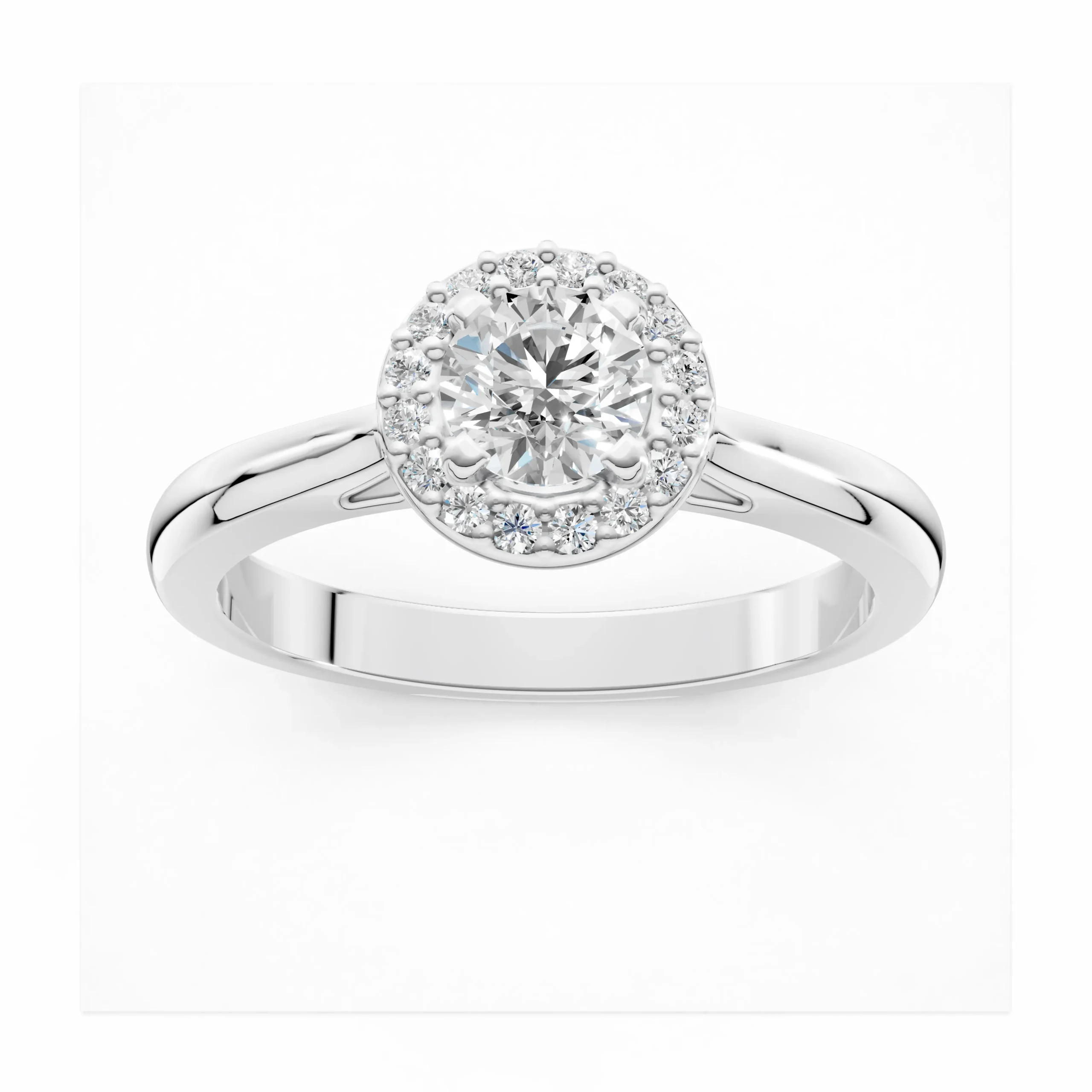 Кольцо для помолвки с бриллиантом 0.3 карата в стиле Ореол белое золото